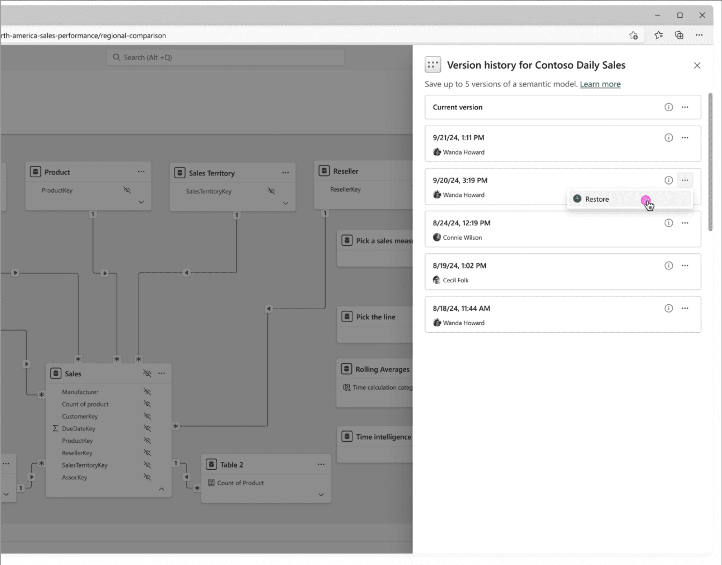 Semantic Model Version History: A long-awaited governance feature is now live. Power BI automatically snapshots up to five versions of each semantic model and shows them in an 'Office-like' history pane. BI teams can easily restore an earlier model if needed. This built-in versioning gives analysts confidence to iterate on complex models. If a change breaks something, you can quickly roll back.